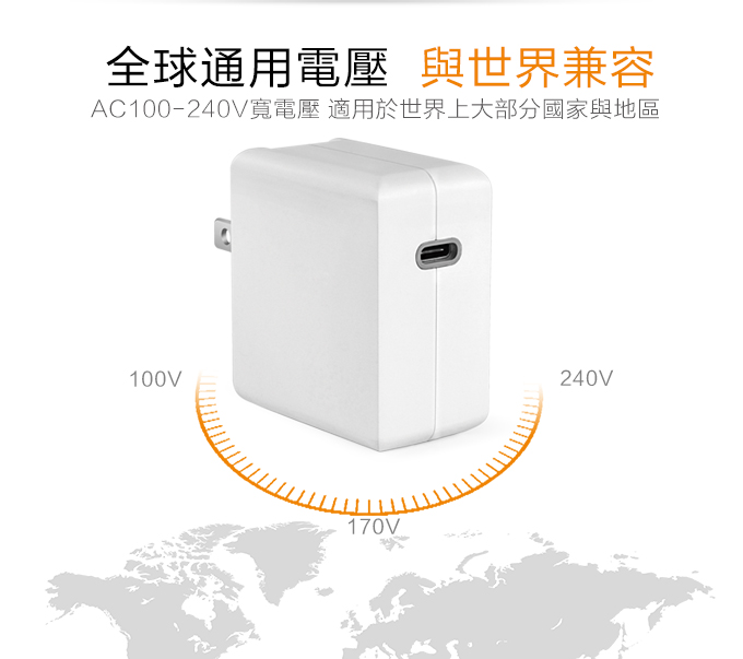 USB-C PD3.0+QC3.0充電模式DC 5V 3A / DC 9V 3A / DC 12V 2.5A / DC 15V 2A