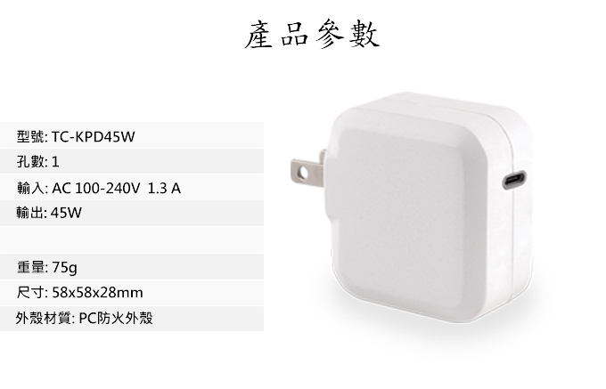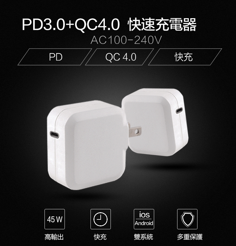 TC-KPD45W USB-C PD 3.0+QC3.0 USB 快速充電器