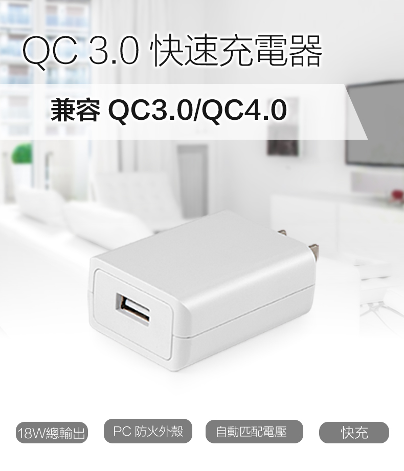 輸出: QC3.0 charging type DC5-6V 3A / DC6-9V 2.0A / DC9-12V 1.5A