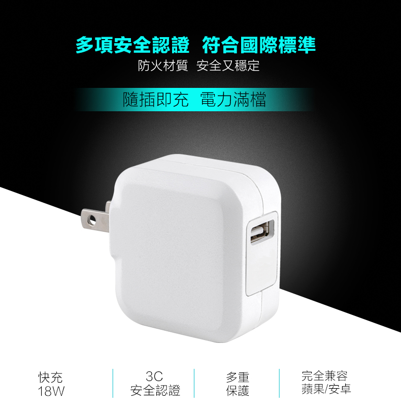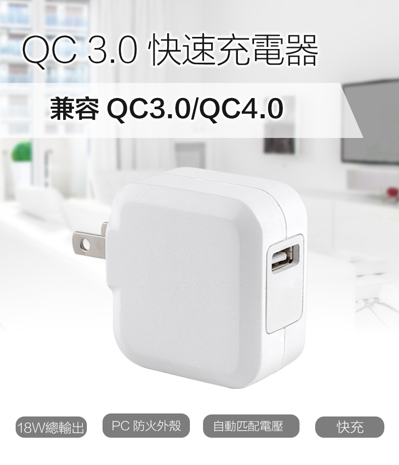 輸出 : QC3.0 charging type DC5-6V 3A / DC6-9V 2.0A / DC9-12V 1.5A
