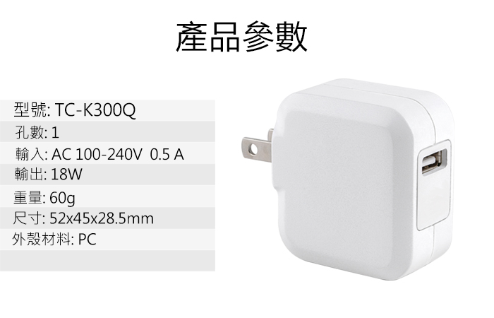 TC-K300Q QC3.0 PSE BSMI USB充電器