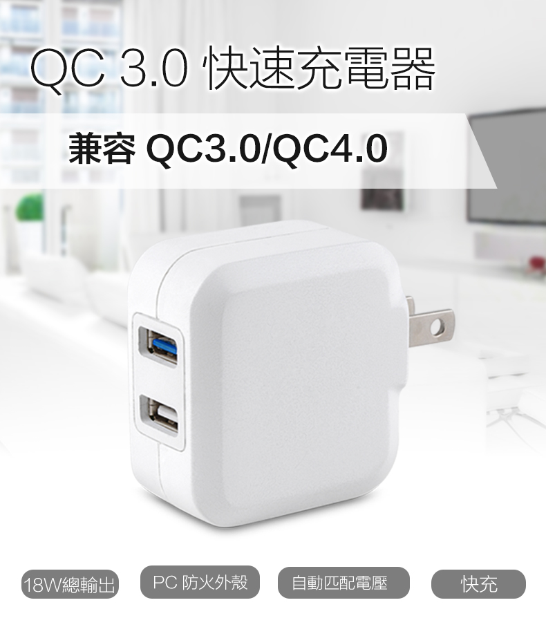 輸出1:QC3.0充電類型,DC5V 3A / DC9V 2.0A / DC12V 1.5A
