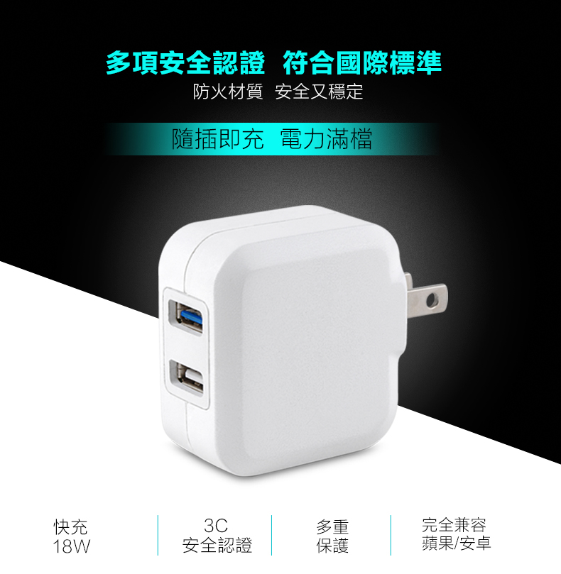 輸出1: QC3.0 charging type, DC5V 3A / DC9V 2.0A / DC12V 1.5A