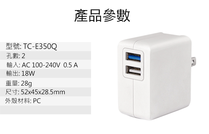 TC-E350Q QC3.0+USB2.0 快速充電器
