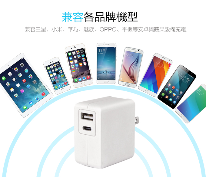 兼容蘋果iOS和三星Android系統及DC 5V電力輸入需求的設備(手機,平板電腦、GPS、行車紀錄器、掌上型遊戲機等等),並可自動偵測並調節電源輸出以符合每個設備的需求,以實現最佳充電過程。