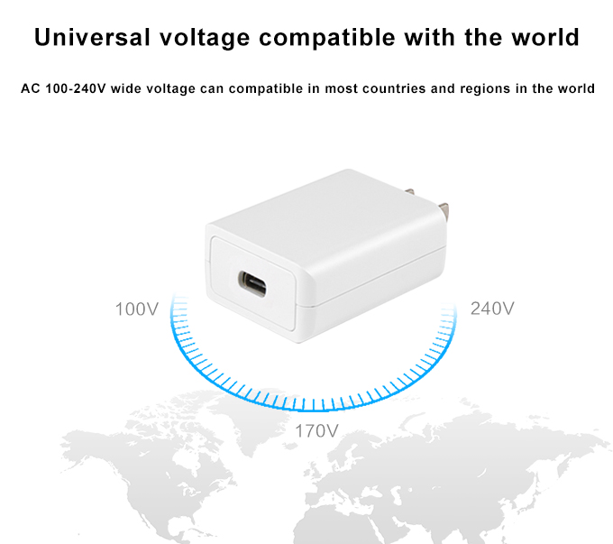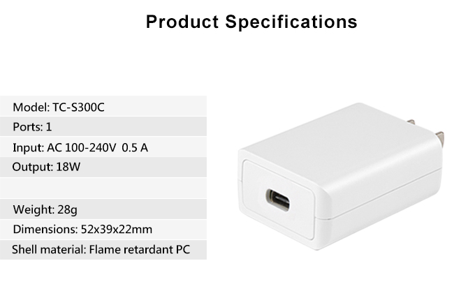TC-S300C mini USB adapter is a light and fine power supply, only 28g. Even with fixed Europe plug is easy to carry too. Support a device with the PD and QC3.0 fast charging mode, it is best choice for saving charging time.