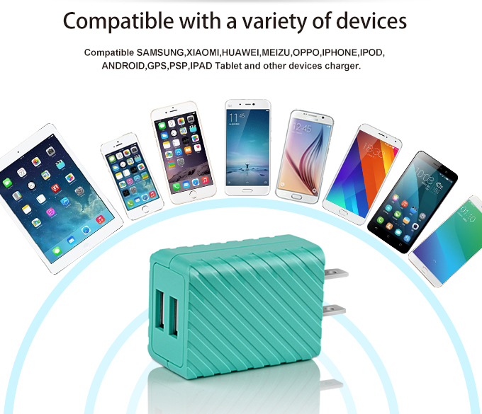 Compatible with IOS and Android charging system, such as iPhone,iPad,Smart Phone,PSP,MP4,GPS,TabletPC…etc. and can auto-regulate power output to suit each device for an optimum charging process.