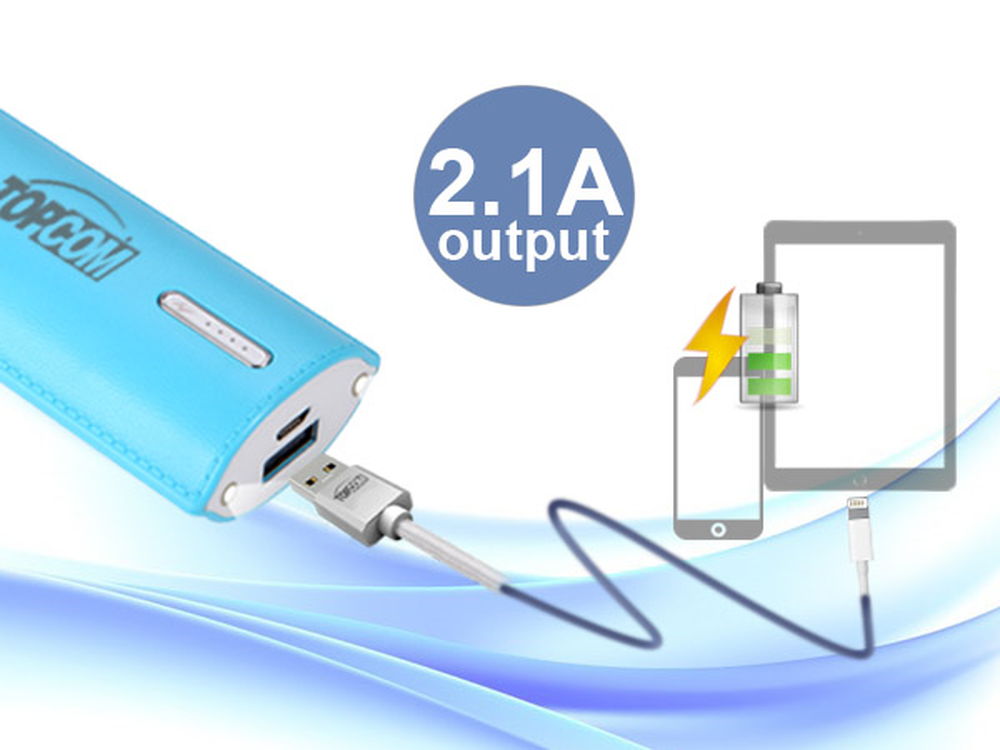 Topcom的PB-S6是一款6700mAh具皮革扣的鋰離子電池的行動電源,DC5V 2.1A輸出電流可為需要DC5V輸入的設備提供快速充電,讓隨時保持電力飽滿的狀態,不漏接任何一張訂單。
